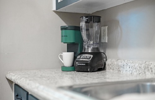 ☀ Kitchen is fully equipped with stainless steel appliances including a large fridge, stove, and a coffee station (including a Keurig & coffee pods)