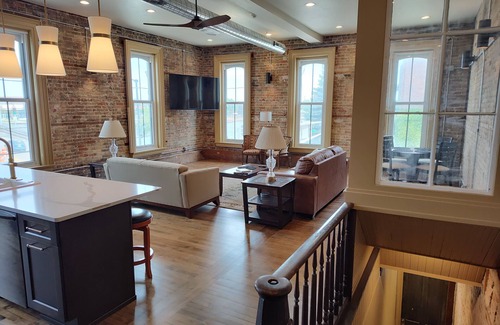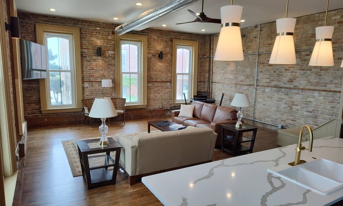 Situated in a prime location, this stunning 2-bedroom industrial loft condo overlooks the beautiful Fox River. With it's spectacular views, luxury amenities and spacious living area it is perfect for a romantic getaway or special celebration. Within blocks of the Leach Amphitheater, farmers market and bike trail, it is the perfect destination within Oshkosh and the surrounding cities of Appleton and Green Bay.