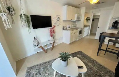 JustUs is the perfect little hideaway in Merritt Island. After a day on the beach enjoy this studio apartment featuring a QUEEN size bed, view of the pool/canal, TV, WiFi, Microwave, Keurig, Refrigerator, Stove, W/D, and more!