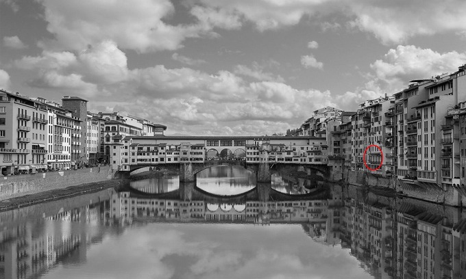 Located in Borgo San Jacopo 6, at the corner of the Ponte Vecchio on the Oltrarno bank. It is unique for its location and its view on the Ponte Vecchio.