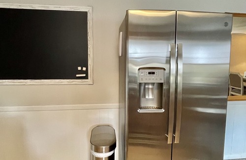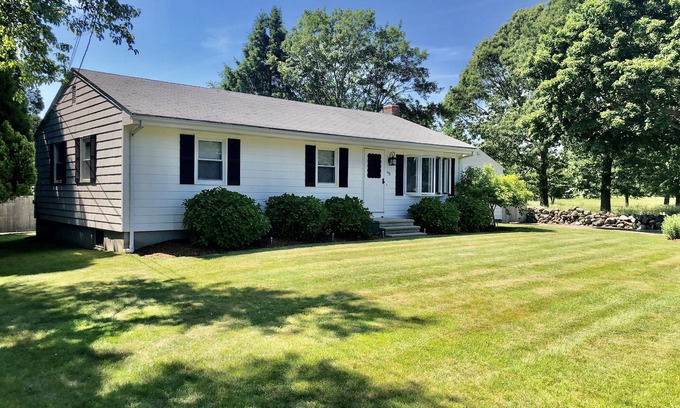 Spacious two bedroom, one bath ranch with central air conditioning. The first bedroom offers a queen bed with a flat screen TV and the second also offers a queen bed, both bedrooms with ample storage. Spacious interior is cozy, bright and fresh. Large sectional in the living room with a large flat screen TV with cable and high speed wireless internet. Living room is open to the dining area with a large farm table with plenty of seating. The kitchen is fully stocked with everything you might need. All stainless kitchen appliances, toaster oven air fryer, full coffee pot and a single serve Kuerig, and Ninja blender. Plenty of plates, glasses, silverware, utensils, pots/pans and a lobster pot. Additional refrigerator located in attached garage. Front load washer/dryer located in bathroom, hairdryer, iron and ironing board. There is a mudroom as you enter to drop your belongings or sit and relax and read a book. Outside furnished deck includes a table, chairs, umbrella and gas grill. Brick patio has additional lounge seating with umbrellas. There is an enclosed outdoor shower.