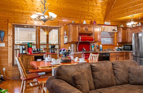 Your wedding stay at PRIME Location, WIFI, Smart TV, Pet WLCM, Game Rm, HDTV, Hot Tub, 7 Mints to City, COZY promises unmatched convenience and comfort for you and your guests. This luxury log cabin is designed to cater to all your wedding accommodation needs while being nestled in a serene Gatlinburg setting.