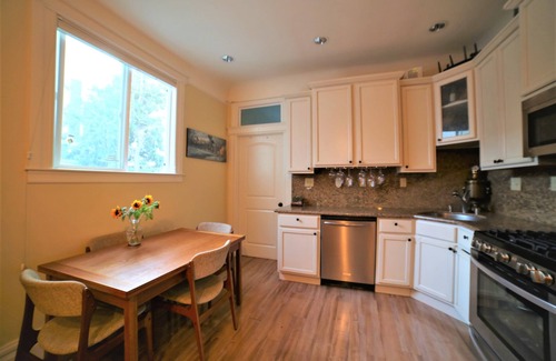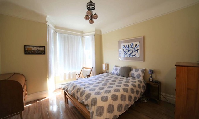 This San Francisco apartment boasts 2 inviting bedrooms. The soothing ambiance of the space will make guests feel right at home. The main, sunny bedroom features a queen bed with a high-end memory mattress and luxury sheets. The second bedroom has a full bed, ensuring a comfortable, quiet night's sleep. The lovely bathroom has a bathtub, shower, and hair dryer for convenience. In addition, guests can enjoy the spacious open-plan living/dining room with a dining table, couch, TV, and (if needed) an air mattress providing extra space for extra guests. The fully stocked kitchen has stainless steel appliances, and all necessary pots and pans to cook up a storm. With amenities like heating, a washing machine, WiFi, and an iron, everything you need is at your fingertips. It's easy to see why you can unwind at our place. It is perfect for business or vacation travelers and families.