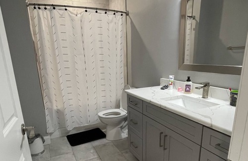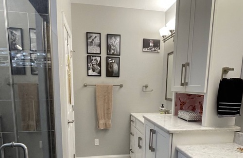 10 foot ceilings and the open floor plan makes this spot great for hosting game day, receptions, and birthday parties. Heated floors in the bathroom will make you rethink remodeling your crib.