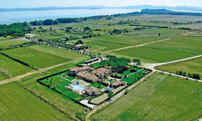 Agriturismo "Principe del Trasimeno". 13 apartments in the residence. 5 km from the centre of Castiglione del Lago, 27 km from the centre of Città della Pieve, 46 km from the centre of Arezzo, 5 km from the lake. For shared use: property 12'000 m2 (fenced), well-kept garden with lawn and plants, swimming pool (16 x 8 m, depth 150 cm, seasonal availability: 01.May. - 30.Sep.). Shower/WC in the pool area, children's pool, outdoor shower, tennis, table tennis, terrace, garden furniture, barbecue house, children's playground (slide, swing), pool maintenance by the owner/gardener. In the house: reception, table football, washing machine (for shared use, extra). Bread roll service. Roofed, parking on the premises. Shop 1 km, supermarket 5 km, bus stop 1.3 km, thermal baths "Rapolano" 40 km. Nearby attractions: Tuoro 13 km, Cortona 15 km, Passignano 17 km, Montepulciano 30 km, Pienza 37 km. Please note: car recommended. Owner lives in separate semi-detached house.