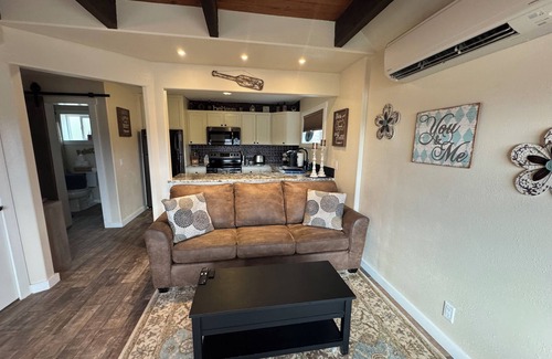 The kitchen is fully stocked and includes a Keurig coffee machine including complimentary K-cups, PRIMO hot/cold water machine, toaster, black stainless steel appliances including dishwasher for easy clean up. The upstairs rooms have queen size beds, dressers, closets, additional sitting areas and Daiken ductless heat/ac units. Check out the Adventure shed for outdoor activities.