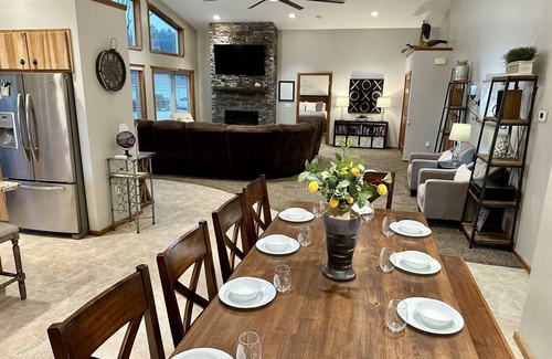 Inside, you'll find the resort is equipped with many comforts of home such as WiFi, central air, 5 flat-screen TVs with streaming capability, and a large sectional sofa with 4 recliners. Our fully supplied kitchen features a gas range with double ovens, a large table that seats 10, and a "theater-style" popcorn machine! We also offer a wide variety of books to read and a closet loaded with family games to play. (Additional folding tables and chairs are available if requested).