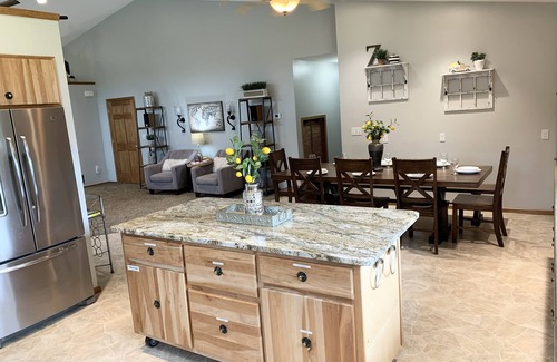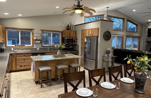 Don’t miss the opportunity to rent this newly expanded 5,000 sqft, 7 BR home in Croton, MI, just 40 miles north of Grand Rapids. This fantastic getaway sleeps up to 18 people in a spacious, open floor plan home, which offers beautiful water views, a fire pit, playground, volleyball net, outdoor AND indoor pickle ball, basketball, shuffleboard, ping pong, air hockey, 10 bikes, 5 kayaks, and a private waterfront pavilion. "Croton Pond" is a 1,380-acre body of water where you can enjoy fishing, bird-watching (bald eagles nesting along the river), and swimming. If interested in a boat rental during your stay, we have a 20 ft. Qwest Pontoon available for rent. For those interested in bringing their own watercraft, there is dock space available.