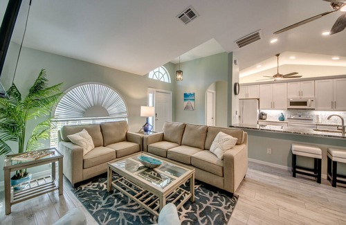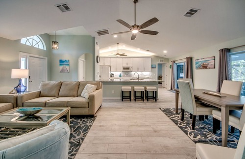 You will never want to go home after spending some time here.. This home has been completely remodeled with open floor plan. Back of home is lined with pocket sliders to open up the main living area and master bedroom. Bright open kitchen fully stocked for anything you might want to make. Kurig coffee maker - toaster- mixer etc. Master is large and also has a sitting room with a sleeper sofa. Large lanai area gives you plenty of options for enjoying the outdoor fresh air. Heated pool that also has just been updated will cool you off on those hot days and on cold days will be warm enough to take a dip. The beds are comfy with plenty of extra blankets. Tv's in master and living room. 2 car garage with beach chairs and cooler for your beach days. Everything you need to have a amazing vacation. No need to bring anything but yourself and your personal items. Close to shopping, Sunsplash, beaches and anything you would like to do to make your vacation memorable. Spend your time here and you won't be disappointed.