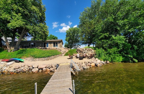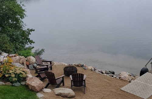 There are several outdoor seating areas, a fire pit, sand beach and large yard for games. The swimming area is free of weeds and has a hard gravel bottom. There are kayaks, a canoe and dock for your use. A great recipe for creating many wonderful memories.