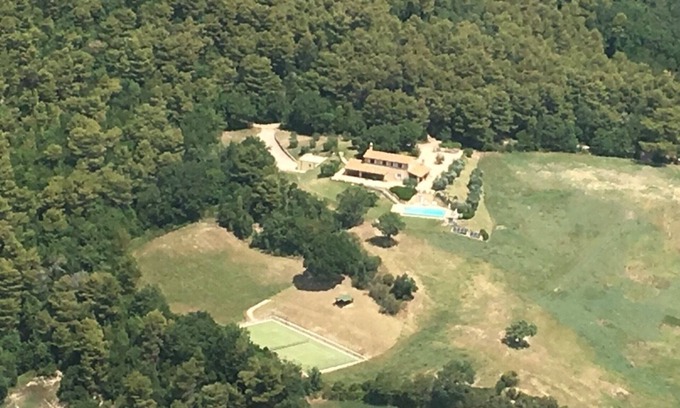 Il Poggio-'the ledge'-is your private window on some of Umbria's prettiest scenery, and a perfect base for the nearby tourist centres of Perugia, Assisi, Spoleto as well as Todi-which is in full view. The farmhouse sits in 2 hectares of gently sloping fields bordered with olives and oak trees. It is built in the traditional stone, timber and terracotta, but with 21st century kitchen, bathrooms, heating and lighting. It has a completely private, zero-chlorine 12 meter 'infinity' pool with panoramic views, poolhouse and a new (2007) tennis court below. The main house makes the most of the views and summer breezes, with its wide covered porches, spacious open-plan living area and separate study downstairs plus three bedrooms upstairs. There are pinewoods with walking trails directly behind the house. A 1km gravel drive leads out to the main asphalt road to the hamlet of Saragano. Shopping and restaurants are at 5 km and the famous wineries and sights of Montefalco and Bevagna at 10km.