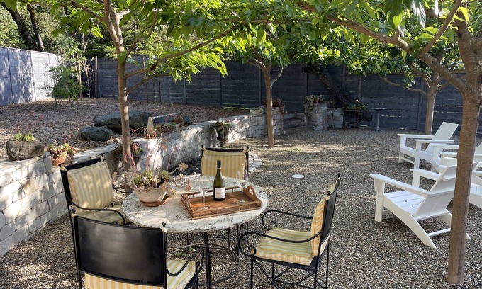 Tucked behind two gates, this guest house offers luxury, seclusion, peace, comfort, and serenity. Located 1.5 miles from Healdsburg Plaza, all the restaurants and wineries are easily reached. Then return to relax.