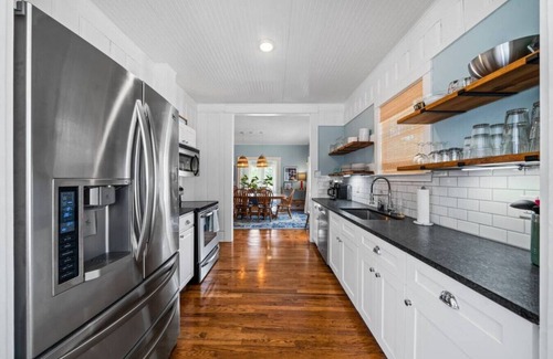 Spend your days kayaking, fishing, or swimming in the river, then unwind around one of two fire pits or fire up the grill and dine under the stars. Inside, you’ll find thoughtful amenities like a dedicated workspace, lightning-fast fiber internet with WiFi, and four 50-inch HDTVs for winding down after a day of adventure.