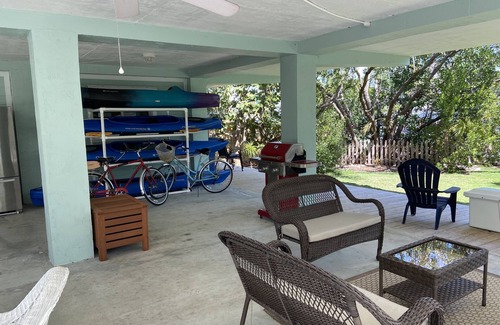 2/2/ Bayside home on short, wide and deep canal. Very short distance into protected Sunset Cove for paddle boarding, kayaking or just swimming. Easy access to oceanside for fishing, snorkeling, diving or just enjoying the beauty of the Florida Keys. Very close to John Pennekamp State Park, which has a beach, Glass Bottom Boat trips, Snorkel or Dive Boats. The home has a spacious Master Bedroom and Bath with King size bed. Second bedroom is a queen and a full second bath. There is a large fenced yard with a beautiful tropical setting. Complete kitchen and gas grill downstairs. About 60 miles to the Miami International airport and rental cars readily available. Bikes and 2 single kayaks and 1 double kayak. Plenty of parking.
