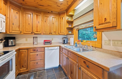 Enjoy the Perfect Mountain Getaway! This 2 BR 2 Bath log cabin is picture perfect sitting on a private lot with beautiful views and easy access. it located just minutes from the Blue Ridge Parkway entrance and only a short drive into Maggie Valley and nearby Waynesville. Outside features a year round view with lots of deck space to enjoy the scenery. A private hot tub area makes for a perfect relaxing evening. Step inside to a fully equipped kitchen, dining and living room areas on the main level. The master bed room on the lower level has a king size bed with full bath. Upstairs has a second king size bed, large room with full bath and loft area. In the loft there is a trundle day bed with 2 twins. Nicely decorated with all the comforts of home, your sure to enjoy your time in this well appointed home.