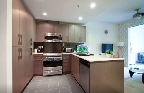 Based on the information received from our partner, the Vancouver apartment is wheelchair accessible. Likewise, there is an elevator specified as being available at the property. Specific accessibility details may be addressed in the property details section of this page.