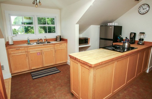 The Flat offers 2 comfortable bedrooms--1 queen and 2 twins with new Posturepedic mattresses and vintage quilts. The bath features a walk-in shower and full laundry services. There is a fully equipped kitchen and a relaxing living and dining area.