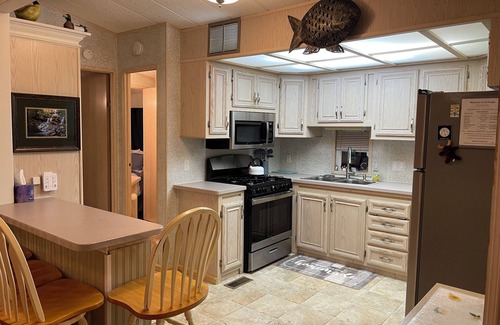Unwind in Point Sebago at this lovely cottage. Very close to the beach and activities this charming retreat features 2 cozy bedrooms - one with a queen bed and the other with a bunk bed. The living room offers an additional sleeping space with a comfy sofa bed. The large yard and fire pit gives you a fantastic place to relax after a busy day of fun. Enjoy modern amenities like AC, heating, and WiFi during your stay. With a bathroom and convenient coin laundry, this tremendous cottage has everything you need for a relaxing getaway. We think our place will help you experience everything Point Sebago has to offer.