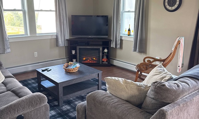 Stay comfortably in Newport at this 2-bedroom garage apartment. The bedrooms feature a wonderful king sleep number bed and a comfy queen bed. With heating and AC, guests can ensure a pleasant stay. The living room hosts an electric fireplace. The bathroom comes equipped with a hair dryer and curling brush for added convenience. Kickback, relax, and enjoy everything Newport and our apartment has to offer.