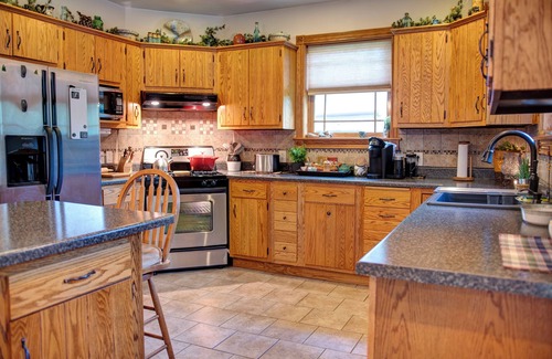 You can enjoy a propane fireplace in the living room, or build you own fire in the fire pit on the patio out back by the pond.
