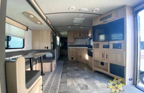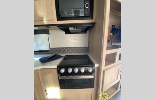 New RV Camper sleeps 4 adults comfortably. Fully connected with ac water electric etc.. full kitchen, living room and bedroom. Shared Boat dock with a dedicated spot for you.. lake access 6 minutes to the lock. Shared Waterfront fire pit.