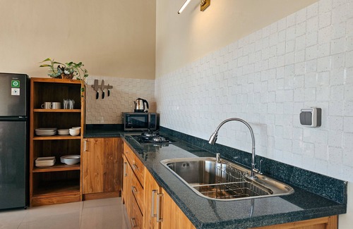 Adjacent to the living area, you'll find a practical kitchenette equipped with modern appliances. The villa also provides a comfortable dining area, perfect for enjoying meals or sharing conversations with friends and family.