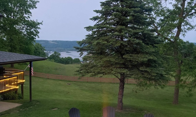 “That dam view” a 3 bedroom(1 king, 1 queen, 2 twins. 2 bath 1500 sq ft home located above Guttenberg on acre st overlooking the town and river. Sitting on just under an acre and there’s plenty of parking and yard space to enjoy. Enjoy sitting on the large deck overlooking the dam and river or underneath the covered patio. The kitchen is furnished with top appliances and enjoy sitting in the living room looking out 2 patio doors at the beautiful views! There is a golden tee and simpsons arcade machines for adults and kids to enjoy! There is a full bathroom on each floor of the house. All three bedrooms are located upstairs with beautiful views of the river and town. Each bedroom has its own separate ac/heating units and controls to adjust to the perfect sleeping temperature. There’s plenty of seats out on the deck and a fire pit in the yard! If your looking for peace and quite this is the place!