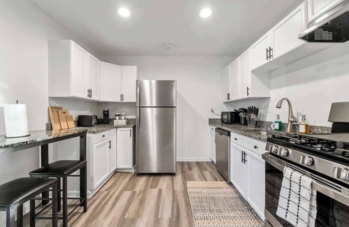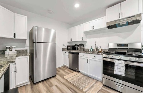 Relax in this peaceful, modern 3-bedroom, 1-bath home featuring a king bed, premium linens, high-speed Wi-Fi, and a well-equipped kitchen. With a cozy patio, spacious backyard, and 1112+ sq.ft of space, it’s perfect for unwinding or remote work. Located just a 5–10 minute drive from hospitals, shopping, and highway access, this home combines tranquility with easy access to essentials.