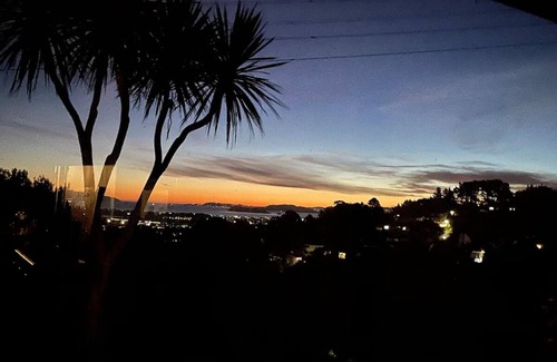 -- a private terrace outside the house where you can watch the wood pigeon , Tui, water view or sunset or the night sky; also harbor views from every bedroom besides the corridor.