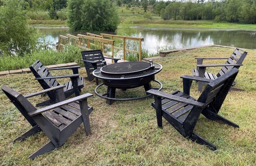 Unwind on the covered patio, furnished with comfy chairs and a sofa, and take in the serene lake views.