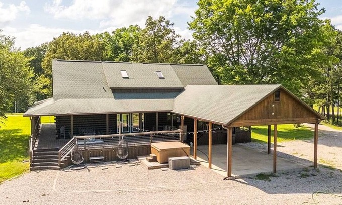 Escape to a peaceful 5BR cabin on 56 private acres near Lake Wappapello. Backed by Mark Twain National Forest, this retreat features a hot tub, stocked pond, shooting range, pool table,large kitchen with oversized island, granite countertops, open concept floor plan with wood burning fireplace, and wrap around deck. Perfect for hunting, fishing, and relaxing with friends and family. Just minutes from town, the lake, and The Camp outdoor venue. Enjoy the charm of the wilderness in this ultimate year- round destination.