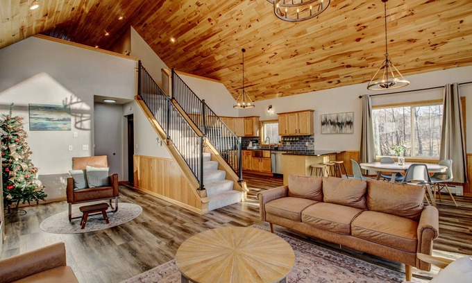 If you're considering a wedding accommodation, the Private - 7 bed 3 bath Lake Cabin +Hot Tub +Dock +2 Pedal Boats +2 Canoes +Sauna offers a picturesque setting that is perfect for your special day. Nestled on Kettle Lake, this property provides the ideal backdrop for romance and celebration.