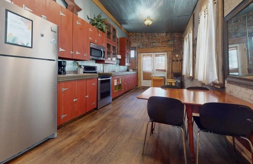 This space is located in the Boneyfiddle Historic District which is right along the Ohio River in downtown Portsmouth, Ohio. If you enjoy the arts, take a stroll along the floodwall murals which depict the history of the area, see a show at the Vern Riffe Center for the Arts on the campus of Shawnee State University, or see an exhibit at the Southern Ohio Museum and Cultural Center. Interested in shopping? The shops along Second and Market Streets offer antiques, clothing, and more. While there is a full kitchen for cooking your own meals, there are several locally owned restaurants (many within walking distance) if you want someone else to do the work. We enjoy what downtown Portsmouth has to offer and hope that you will, too!