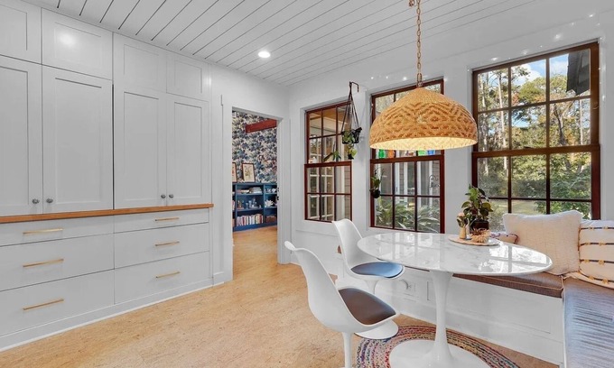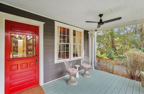 The Hemlock House is located 15 minutes south of the Historic District where you can relax in this peaceful, stylish and private space. The 2 bedroom, 1 bath home has an old cabin feel in half of it (built in the 1940's), plus a modern addition (built in in 2015) that includes a dining nook, coffee bar and large sunroom. This spacious room has a lounge area and standup desk if you need an office space. Off the sunroom, you'll find access to a spacious backyard that includes a charming swing that hangs from the Live Oak tree and a fire pit with four Adirondack chairs. To note- there is a small guest house in the back that can sometimes be rented out to other guests. Also to note, there is a primary bedroom suite in the main house that will not be accessible to guests.