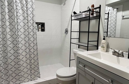 The space is clean and fully remodeled with 3 bedrooms (1 queen bed, and 2 Full beds) all equipped with fresh clean linen and extra blankets in the closet. The two full bed bedrooms share a bathroom while the queen-sized bedroom has its own attached bathroom. Both have a spacious walk-in shower with fresh towels, and small amenities provided for your convenience. Such as shampoo, body wash, hand soap, makeup wipes, etc. One towel per guest will be provided. It will be located on top of your beds along with hand towels and washcloths. There are tissues, cleaning products, and feminine products under the sink and cabinet drawer.