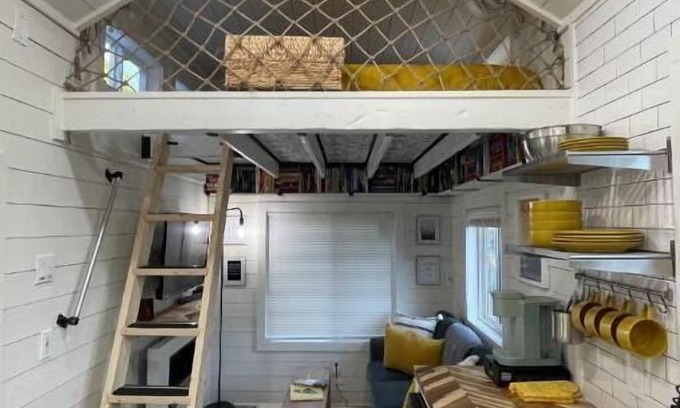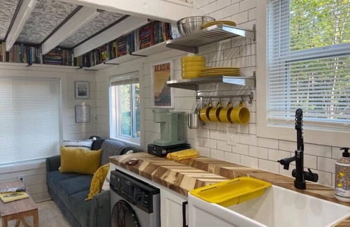 • 2 queen-sized beds each in a sleeping loft (keep in mind this is a tiny home, so head height restrictions do apply)
