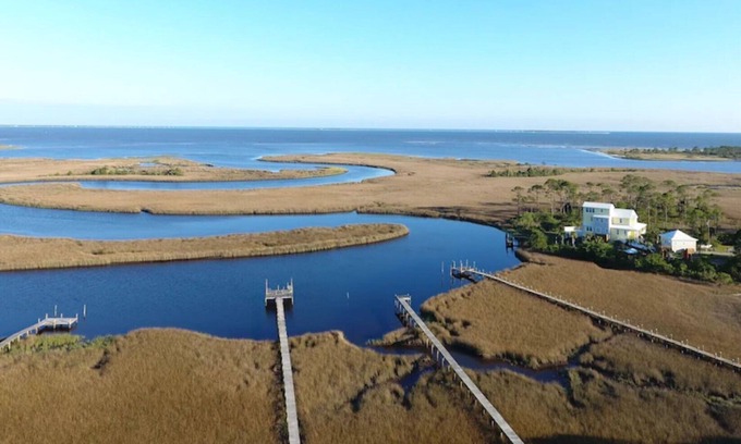 Here you'll find privacy, peace, and beauty at your own vacation acre tucked into a gorgeous setting just off the Carrabelle River, with great views of Postum Bayou and St. George Sound .