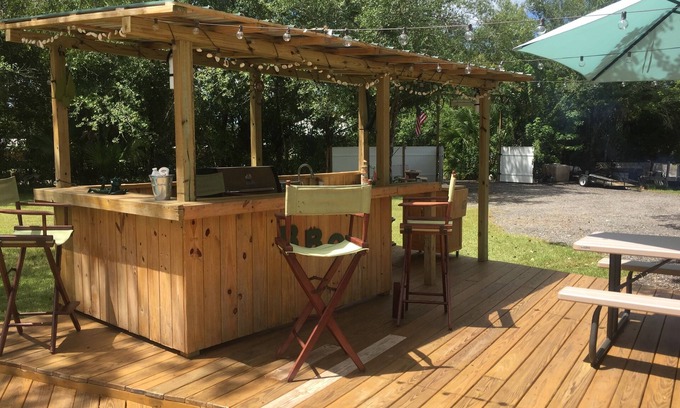 Private gated property, 2 buildings- home has 2 bedrooms, 1 bathroom, laundry room, dinning, kitchen and living area surrounded by a southern style porch with 2 different seating areas to enjoy, outdoor kitchen and pool. Garage is a game room set up with dominoes table, pool table, Foosball table, cards and various table games. has a small kitchen, full bathroom and upstairs bedroom with a double bed. Garage is decorated as a sports bar featuring awards won by the family on 2 wheals, BMX, Dirt bike and speed bikes and furniture made with used race tires. All bedrooms and living areas equip with smart TVs and dvd players. Home has a fire pit area, a gardening area with some produce growing and a big pond. beach equipment, bicycles and lawn games are also available. Property is completely fenced and private, close the front gates and feel like you are in your own private island.