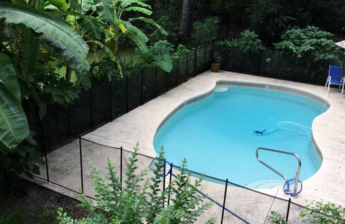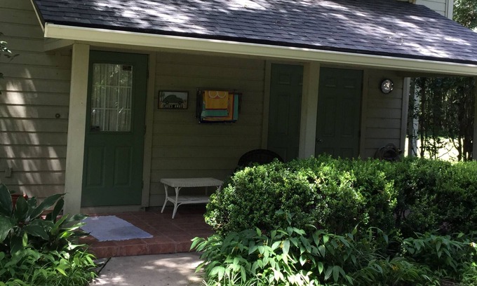 As you drive through the little woods to this property, you begin your CARES AWAY experience! The private second story 1,000 sq. Ft. Pool house apartment sleeps 4 and includes a full kitchen, large open living area, covered balcony porch, and an in-ground pool right outside your door! Perfect for football weekends, attending events at nearby wedding venues, equestrian centers, Newberry softball and archery venues, BMX venue, the Florida springs, business travellers, and winter vacationers. The large bedroom has a king sized bed that can be made into two twins. The living room has a trundle daybed (2 twins), and air mattresses are available for additional guests, if needed. Pack n Play for a baby is also provided if needed. You will appreciate the high quality bedding, affording you a great night's sleep.