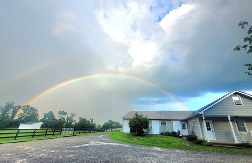 Lovely and recently renovated apartment! The downstairs is a lovely open floor plan. Cozy but classy and we have a full working kitchen in there as well which is an open space to the living roon. Sink, stove, oven etc. Pots and pans and everything in the kitchen is for you to use if you would like! We try to leave our guests fresh eggs from the chickens and organic produce when available. Upstairs is a cozy loft with a nice bed. Free wifi included and there is netflix and hulu available to you as well. The shared space that is closer to our home (backyard) is the firepit and grill which you are welcome to use and enjoy the views while you are at it. You will be on a farm- we have free range chickens and turkeys that wander around the farm most of the time and lots of horses in view! We hope you enjoy your stay and look forward to hosting you!