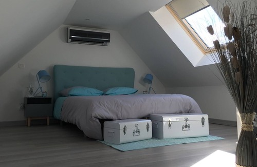 Agnes and Hervé welcome you in their villa at the heart of Villechetif! We welcome you to our beautiful home where you can enjoy a comfortable apartment with kitchen with fridge, hob, microwave, living room, bedroom with safe, WC and a bathroom showers.