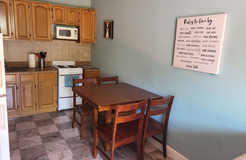 Full kitchen, stove with oven, big size refrigerator, living and dining room sets, utensils and more to be able to cook and prepare breakfasts, Can host up yo 3 people or 4 if small kids.