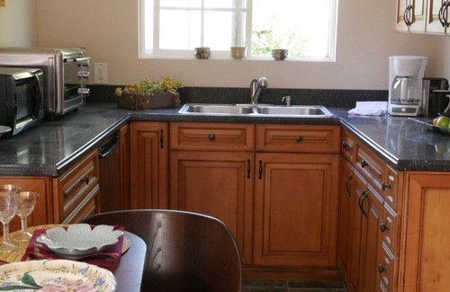Newly remodeled custom design with a custom mural painted by Curt Miller. Central air and heat. Kitchen includes refrigerator, microwave, convection oven, induction cooktop, coffee maker, dishes and utensils. Private bathroom includes shampoo and conditioner, soap, extra towels and a blow dryer. Private entrance, wide-screen TV and free internet. It's a great place to sit back, relax and have a glass of wine! Dog accepted with $50.00 non-refundable fee per dog. (Sorry, no cats). Dog must be under 30 lb and get along with other dogs and cats. Lots of street parking available. Quiet neighborhood! Professionally cleaned and sanitized by #Vicpapalii