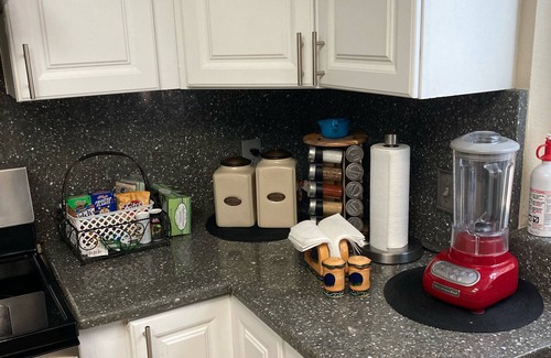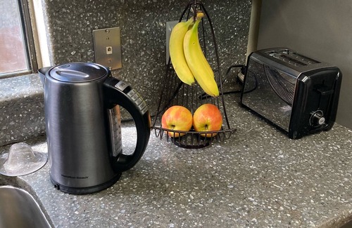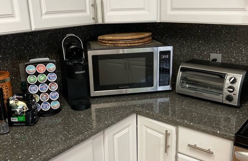 Kitchen appliances: glass top electric stove; dishwasher; spacious refrigerator; stainless steel cookware, panini maker with griddle and grill functions, steamer for fish/meat and vegetables; digital air-fryer; slow cooker/rice cooker; grinder and different types of coffee makers; 2-slice toaster; toaster oven; blender; grilling tools; stovetop smoker. Additional appliances can be supplied upon a timely request.
