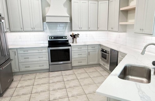 - Modern Amenities: The newly remodeled bathrooms and well-equipped kitchen with stainless steel appliances make entertaining your guests a breeze, providing all the comforts of home during your special stay.