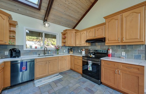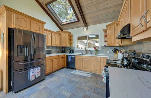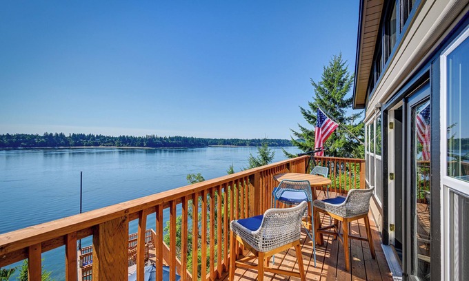 Grant your loved ones a truly memorable getaway to this 3-bedroom, 2.5-bath cliffside home. Perched along the shores of the South Puget Sound, the vacation rental hosts a quiet private beach and sweeping views, perfect for admiring from the 3-level deck. Explore the wild beauty of the island at surrounding state parks, or take advantage of the great outdoors from your own backyard, with swimming and kayaking at your fingertips!