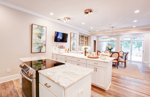 This waterfront home is nestled on the shores of Lake Wylie in Charlotte, NC. It's one of the rare properties on the lake with its’ own sprawling private beach, new sand-wrapped dock, kayaks and paddle boards. The property is ideal for young children and families to enjoy.