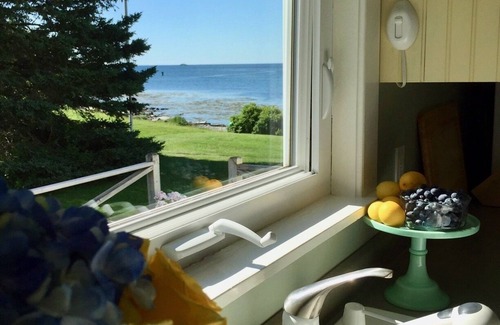 This sunny year-round Maine house is fresh, clean & comfortable with breathtaking views inside & out. There is plenty of comfortable seating in the living room where wrap windows to the south, east and west bring in the drama of the oceanfront setting. Here, it is always amazing how the colors and the light are forever changing. The proximity to the water brings the soft and soothing sound of gentle waves and cooling breezes even on the hottest days of summer. It is possible to have the best sleep here. Each bedroom has water views, comfortable beds & fresh cotton linens.