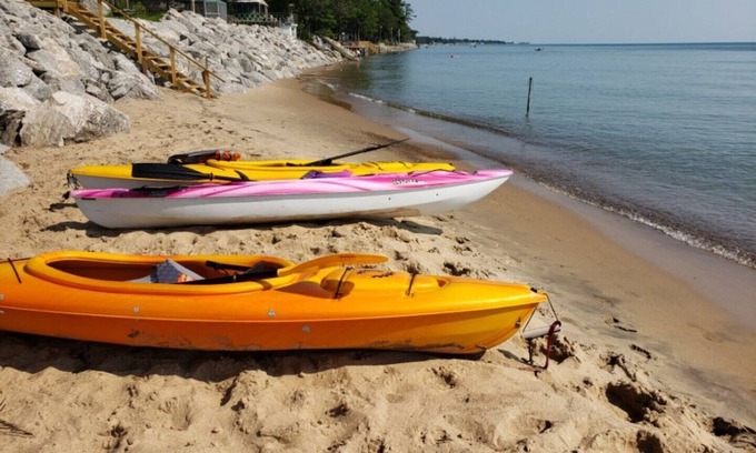 Our beautiful beach home offers something for everyone. Swim in the clear waters or just take in the view from our 50 feet of private beach on Lake Huron. Two kayaks are provided for you to enjoy while on the property. We are close to hiking, ATV, and snowmobile trails in the Huron National Forest. A paved multi-use trail was recently constructed across the front of our property for safety while walking, running, cycling and more! Lumberman's Monument and the Au Sable River are only a short drive away. Enjoy shopping or the many festivals in Tawas, 10 miles away, or 5 miles away in Oscoda.