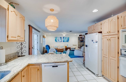 Cozy two bedroom two bath with jacuzzi tub in quiet residential neighborhood two lots from private beach, approx. 2 minute walk. Renters have access to private beach pictured in photos. Covered porch overlooks sunny private pool. Conveniently located to local shopping, grocery, spa, yoga studio, and restaurants.